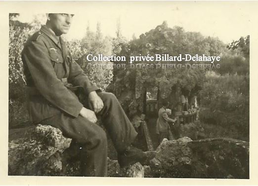 Sodat allemand photographié sur les grottes de Majolan avec des civils. A partir de 1940, le château de Dulamon dont les grottes faisaient parties de la propriété était occupé par les allemands.