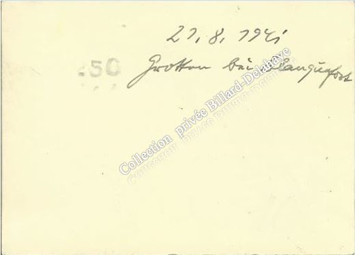 Grottes de Majolan, 21 08 1941 (verso) où l'on voit que dans ce château réquisitionné en partie par une unité de la FLAK ou équipes de la DCA des jeunes filles de BL et environs prenaient du bon temps avec l'occupant.