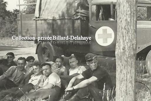 Repos pour l'équipage d'un camion sanitaire allemand sur le bord d'une route de Gironde.