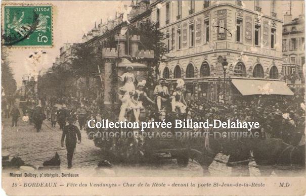 Fête des vendanges le char de la Réole arrive cours de l'Intendance.
