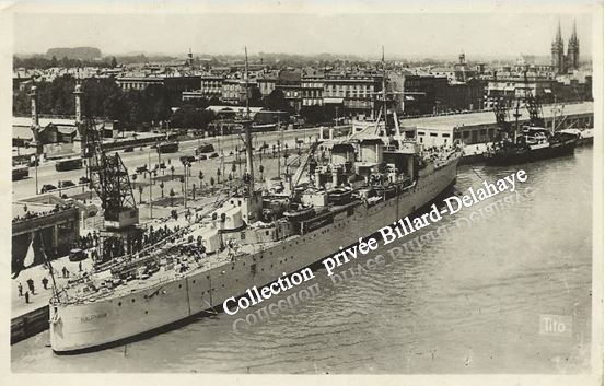 Croiseur DUGAY-TROUIN devant les Quinconces (tampon poste Bx 1922).