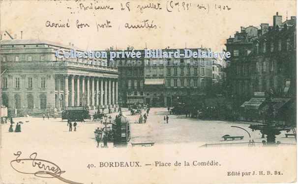 PLACE de la COMEDIE. CPA envoyée le 28.07.1902, il y a + de 110 ans.
