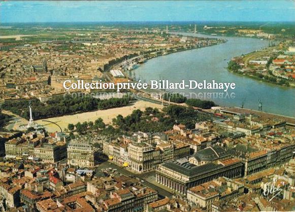 VUE GENERALE DU GRAND THEATRE ET DE LA PLACE DES QUINCONCES. LE PORT, AU FOND LE NOUVEAU SUSPENDU.