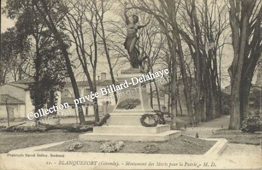 MONUMENT AUX MORTS DE BLANQUEFORT INAUGURE LE 21.05.1922.