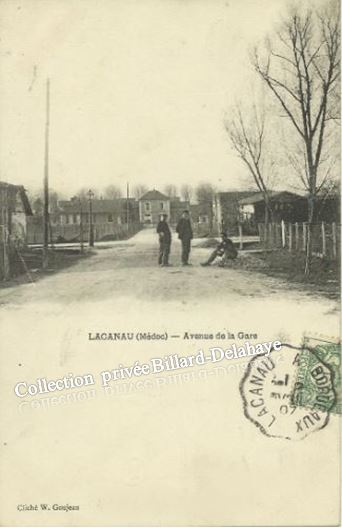 LACANAU-VILLE (Gironde). AVENUE DE LA GARE EN 1900 : DEMOLIE EN 1978.