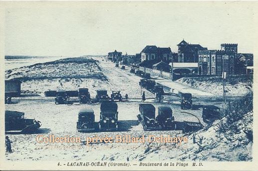 Boulevard de la Plage.C'était Lacanau-Océan il y a juste 105 ans, époque où une station balnéaire est née à l'initiarive de Pierre Ortal cheville ouvrière de l'arrivée du chemin de fer en 1905 et en 1910 à la route reliant Lacanau-ville à l'océan.