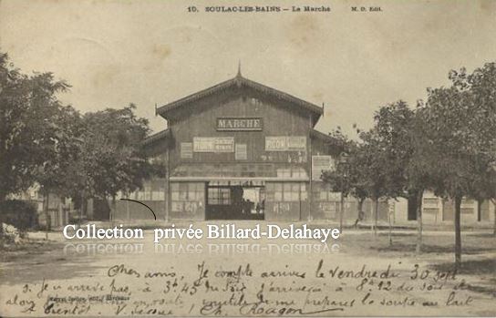 Marché en bois peut-être le premier édifié à Soulac. Envoi en septembre 1904 de CH. RAGON à M. CHAUVE, facteur en retraite, VARZY (Nièvre).