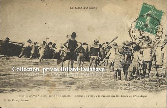 Retour de pêche à la Pinasse sur les Bords de l'Atlantique. Courrier de juillet 1924.envoyé à Mme et M. BORIE - BARSAC (33).