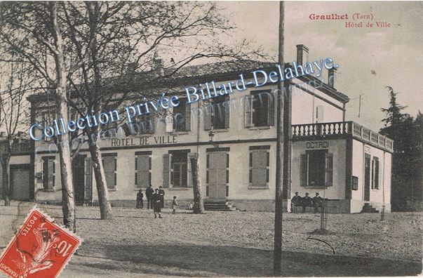 OCTROI et MAIRIE de GRAULHET. CPA. circulé en 1910.