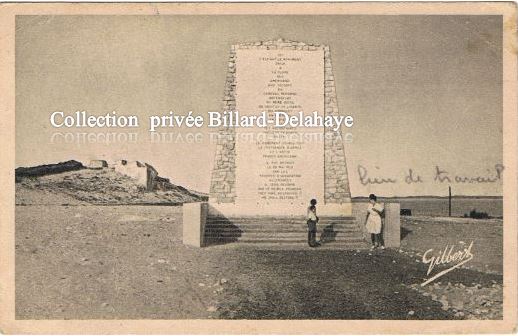 Monument commémoratif du Débarquement américain 1917 à la Pointe de Grave. Texte de la CPA :"Notre lieu de travail et la dernière station avant l'Amérique"..