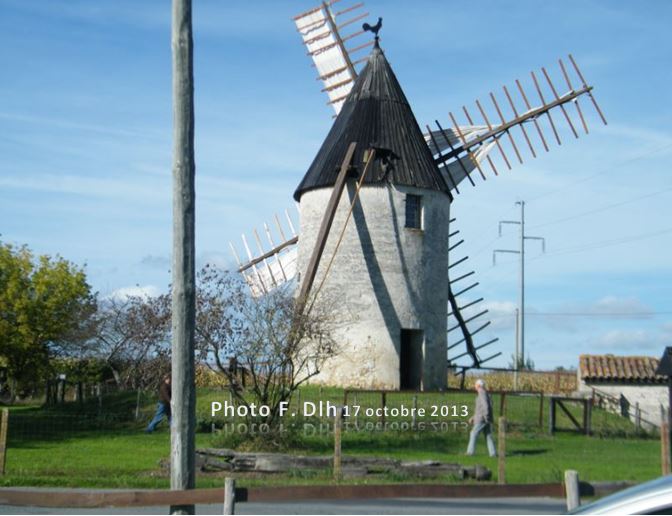 Jean, au pied du moulin, représente une longue lignée de meuniers. Il avait choisi pour le dernier voyage de fin d'année qu'il ferait avec le groupe de généalogie de Blanquefort, la visite du Moulin de Vensac en 2013.