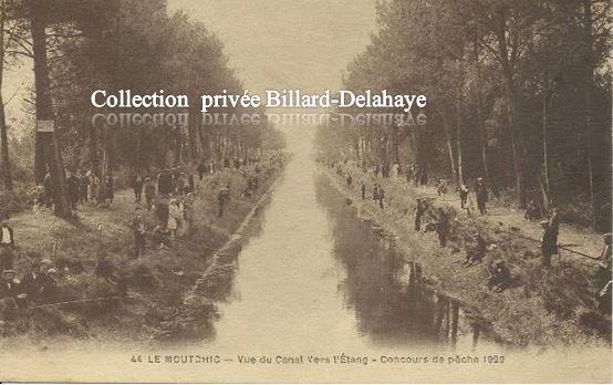 LE MOUTCHIC (LACANAU) - CONCOURS DE PECHE SUR LE CANAL EN 1929.